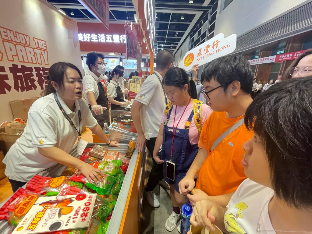 同學們參觀五豐行位於美食博覽的展位。巴士的報記者攝