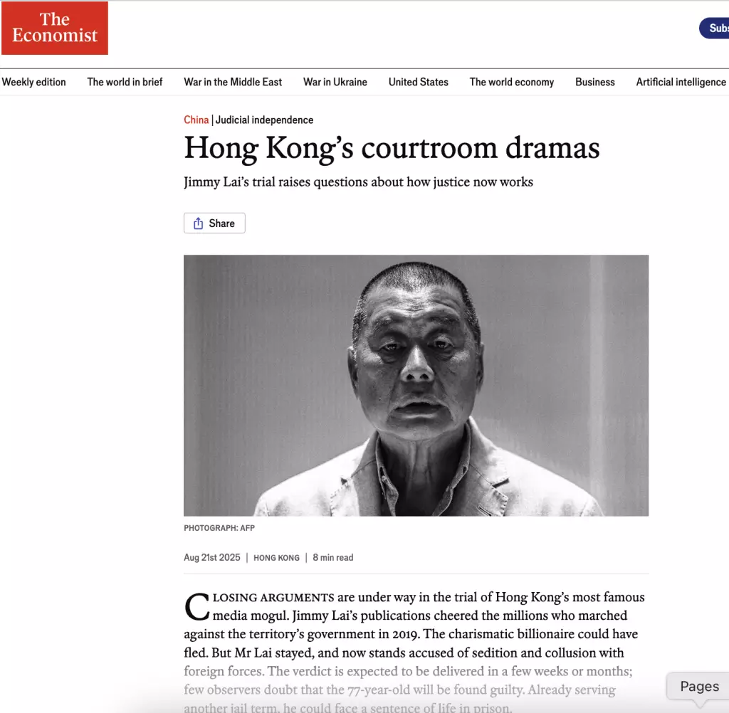 對於英國周報《經濟學人》(The Economist)文章對《香港國安法》和《維護國家安全條例》的歪曲事實和毫無根據的批評,保安局局長鄧炳強星期五(8月22日)致函表示反對。