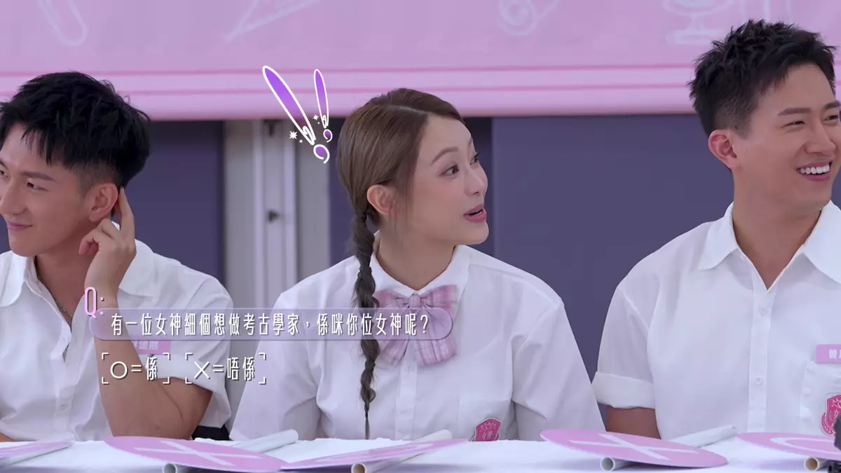 眾多答案之中,場面最混亂竟是「考古學家」題,問題一出,向來口多多的GM即九秒九問:「呢啲咁Kam嘅嘢邊個?」Kris即搶答:「好似係你嗰個(指Sophie)」,Sophie聞言扮嬲反擊Kris:「做乜話我Kam」。之後話完有呢個「考古學」想法好Kam的GM,答題時竟舉圓圈(意指佢認為答案主角是Sophie),令Sophie再遭Yuki搞笑「踩多句」:「GM都覺得你Kam!」被最愛GM列入Kam系的Sophie,最後放棄人生說了一句:「GM話最Kam係我」,GM見狀即補鑊:「唔係,你愛歷史!」似耍花槍多過玩遊戲。值得留意的是,當這條答案一揭曉,全場即陷入一片驚呼,到底答案有幾咁出人意表?最令人詫異的,是原來有大部分女神讀書時均曾遭受欺凌,另外就是竟有不止一位女神、於讀書時試過同時被五名男生追求,到底邊位咁有魅力?密切留意節目!