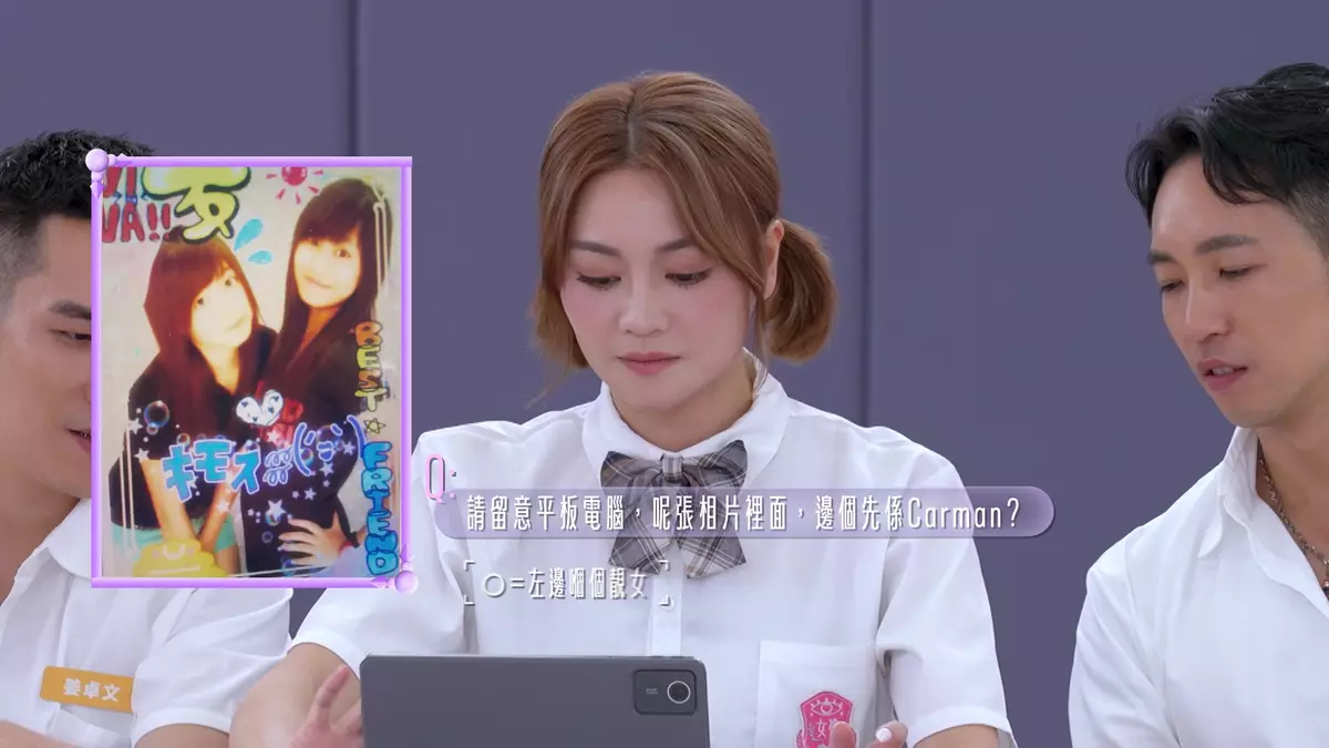 至於五條專屬題中,最令大家頭痕的題目非關嘉敏莫屬!事緣Carman提供了一張中學時期與女同學影的貼紙相,問題是「呢張相入面邊個先係Carman」。但由於事主提供照片不但因有番咁上下歷史「舊到模糊」,相中兩名女生的外表亦似乎與現在的Carman扯不上任何關係,結果令Matthew及細John同時陷入極大黑人問號,與Carman向來心意相通的Matthew亦投晒降:「我睇咗好耐,因為兩個都唔似Carman。」最終答案一出,不止參賽者,連幕後工作人員也為之嘩然,到底答案可以有幾Tricky?