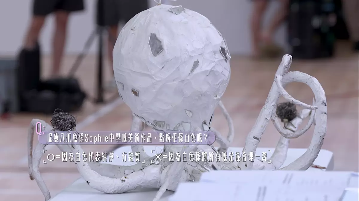 另一條值得留意的是Sophie的專屬題,Sophie拿出了中學時期的美術作品—白色的八爪魚,問題則是隻八爪魚「點解係白色」。由於問題相當意識流,GM及Eddie亦分別將自己對Sophie的了解發揮得淋漓盡致,Eddie以八爪魚作品上有很多小鏡子作為解題著眼點,GM則以Sophie喜愛哲學作為思考根據。想見識GM與Eddie為女神谷到盡的「吹水能力」及「聯想力」?密切留意本周日最後一集《女神配對計劃》,今集最後仲有《最後告白》劇場版預告,萬勿錯過。