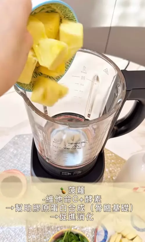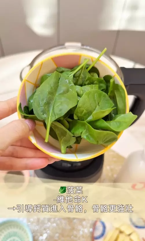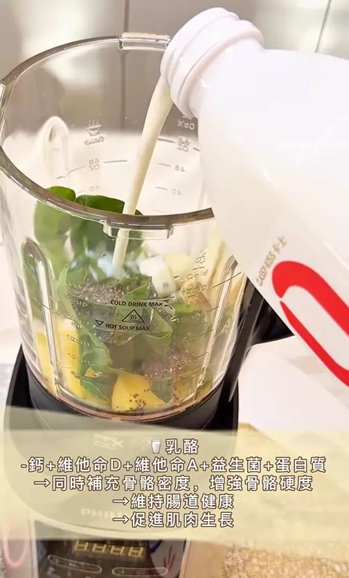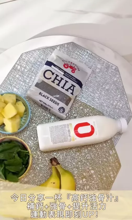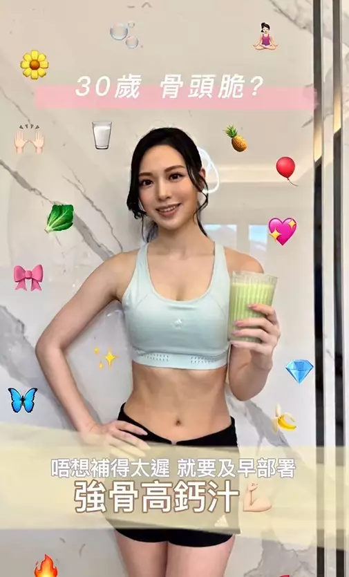 馮盈盈在片中解釋,不少人運動時關節會發出聲響,其實與骨骼健康密切相關。她引述科學研究指出:「你知道30歲後,骨質每年流失1%嗎?唔想骨頭脆,補得太遲?」為此,她親自示範自製「高鈣強骨汁」,選用乳酪、香蕉、菠蘿、菠菜及奇亞籽五種材料,強調做法簡單且能有效補充鈣質。