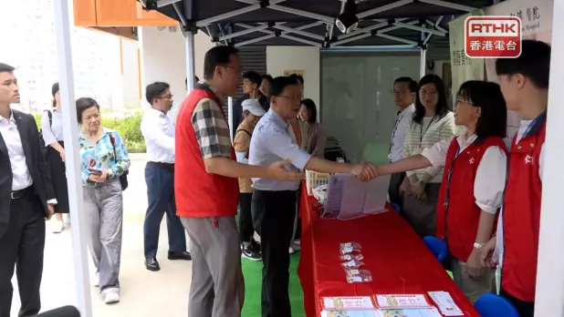 李家超又在簡約公屋的辦事處與居民見面交流,包括小童,了解他們的居住情況。