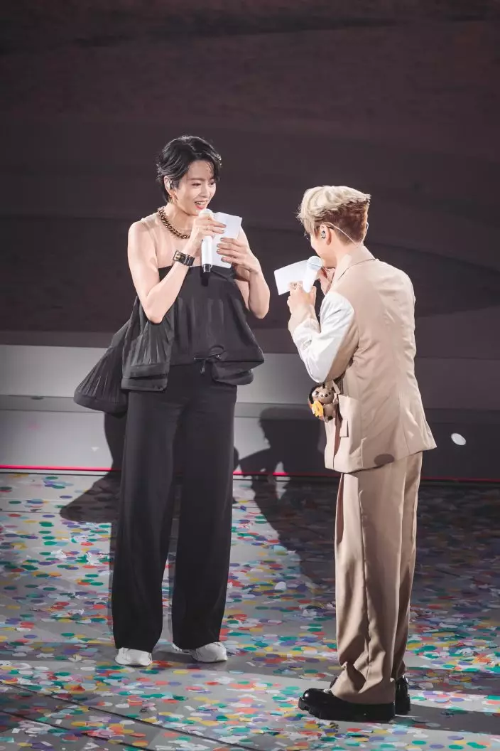 林家謙在紅館舉行《White Summer》演唱會,昨晚(22日)來到第三場,迎來另一位重量級嘉賓天后梁詠琪(Gigi)。兩人不僅同台合唱經典歌曲,更妙語連珠互動,從「心經傳授」到「紅館追債」,再到互贈「矮仔正傳」與「I仔」創作約定,引爆全場笑聲不斷!