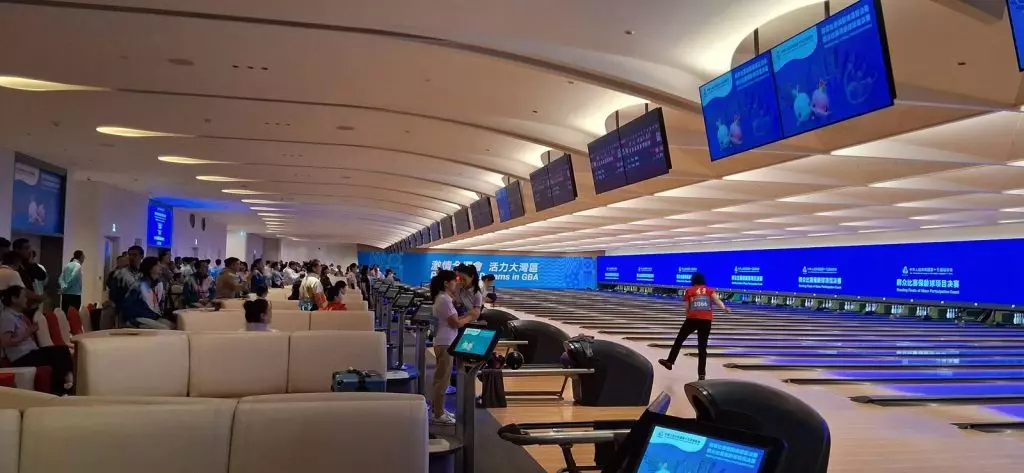 全運會群眾比賽保齡球項目決賽第二日,今早開始在啟德體育園保齡球中心進行雙人賽。上午出賽的湖南與北京運動員完成12局後,分別在男、女子組領先,待下午開始的賽事完成,即以總分決定獎牌得主。
