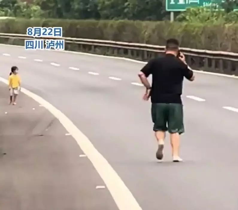 綜合內媒報導,四川瀘州一名年約2歲的女童於8月22日趁家人不在家,從住所獨自跑上附近的高速公路玩耍,並多次衝向車流密集的路中央,極易引發嚴重事故,險象環生。