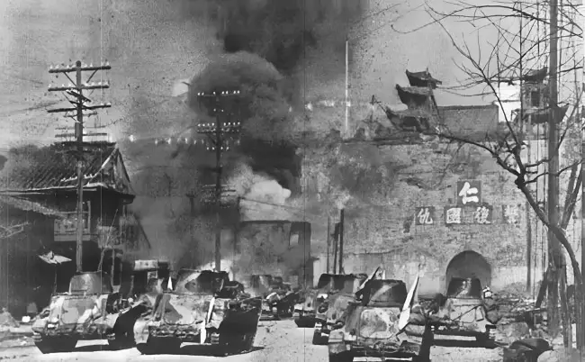 日軍1937年底進攻南京,拉貝和留守的國際友人設立安全區,救助難民。圖為日軍進犯南京中華門。網上圖片