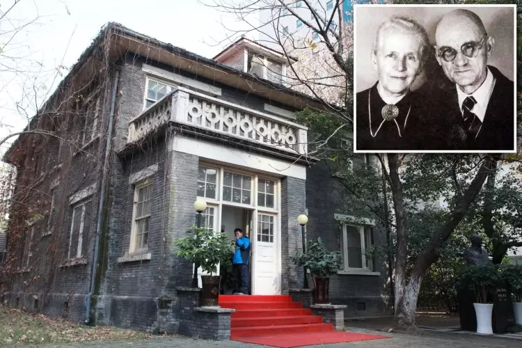 拉貝的住宅和花園接收了約600名難民。圖為拉貝在南京的故居,小圖為拉貝和夫人合影。視覺中國/當代中國授權