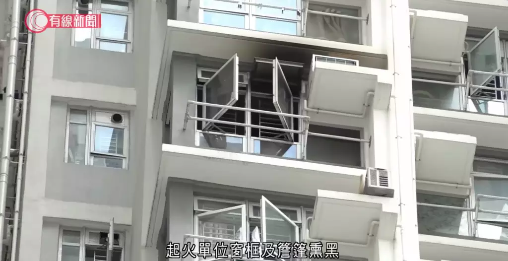 長沙灣海達邨海榮樓發生火警,一名女子死亡。有線新聞影片截圖