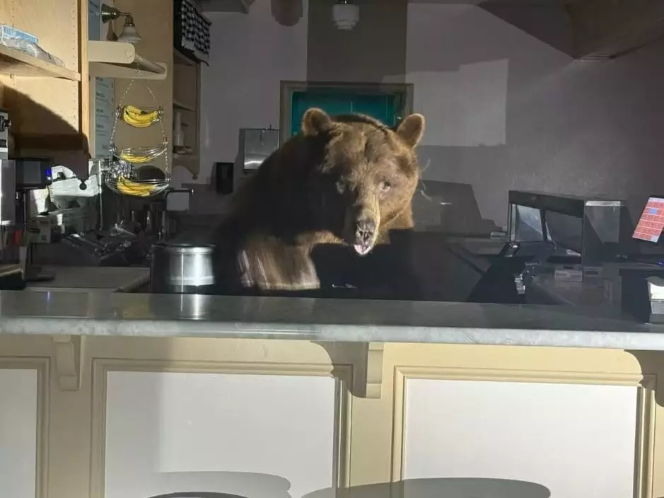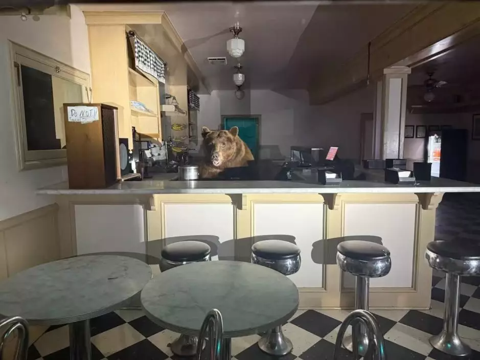 加州一隻為食棕熊清晨闖雪糕店覓食,懵懂站在櫃台內側竟似「店員」,滑稽場面曝光!