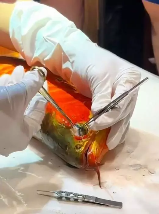 綜合內媒報導,內地一條曾於2023年世界龍魚錦標賽奪冠的「龍魚」近日於上海接受「割眼袋」手術。網傳畫面可見,一名男子手持剪刀及鑷子,小心翼翼處理龍魚雙眼下方脂肪,周圍有多人在一旁打光及拍攝,整個過程歷時不到5分鐘。手術結束後,龍魚隨即被放回水缸「休養」。