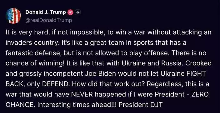 8月21日,特朗普在社交媒體表示,烏克蘭唯有「主動進攻」才能擊敗俄羅斯,否則沒有勝算。但相關美國官員稱,特朗普目前並未轉變政策立場,不會取消五角大樓的審查機制或鼓勵烏方大規模使用遠程系統。不過,一名白宮高官暗示,如果三方峰會後局勢變化,特朗普可能會支持擴大對俄攻勢。