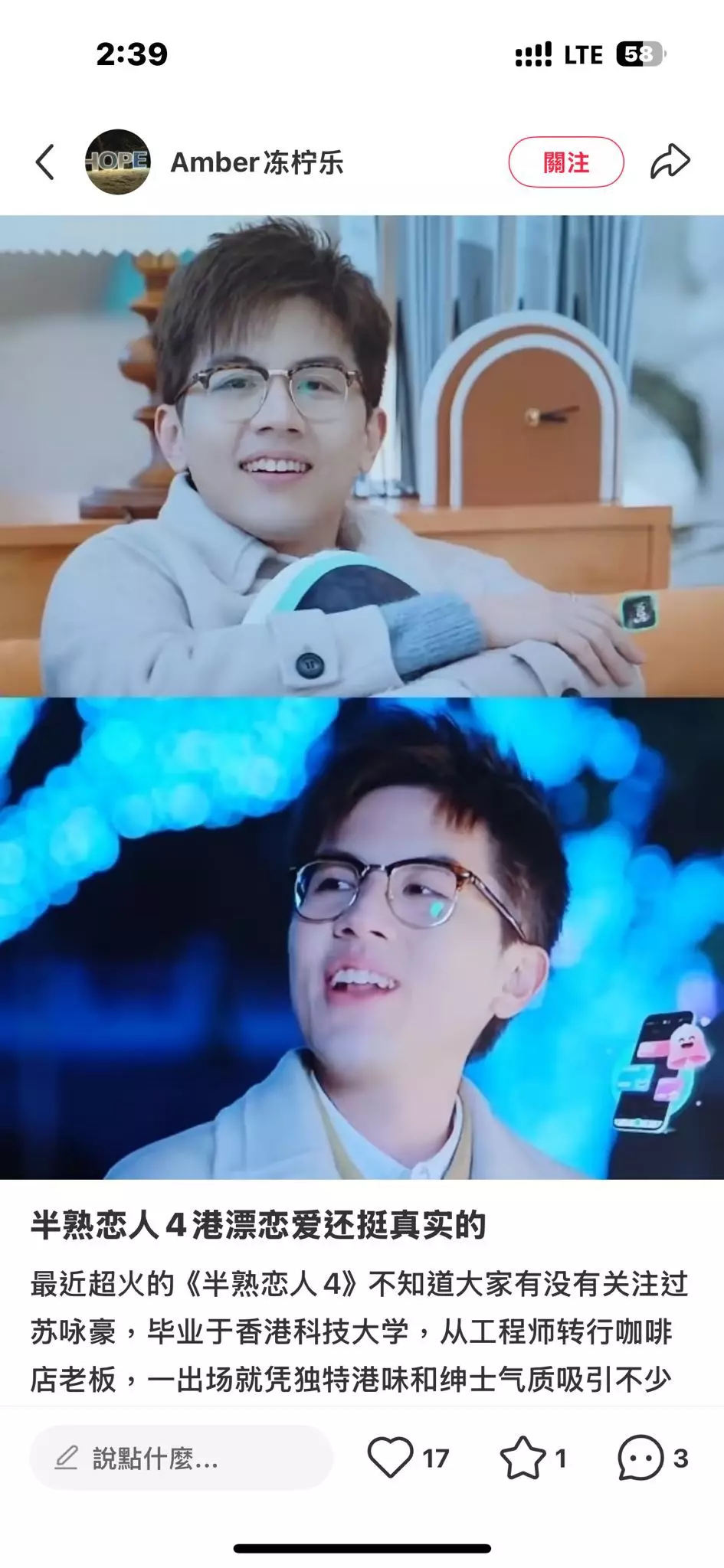 蘇詠豪因參加內地戀愛綜藝《半熟戀人4》人氣急升