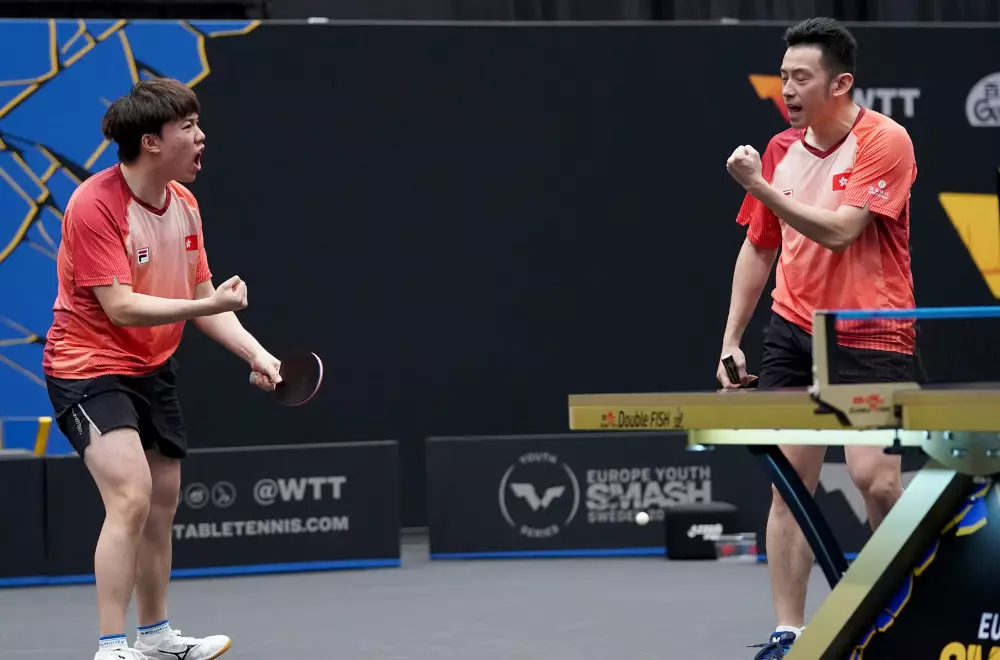 黃鎮廷和陳顥樺凱在世界乒乓球職業大聯盟歐洲大滿貫賽瑞典站奪得男雙冠軍。WTT圖片