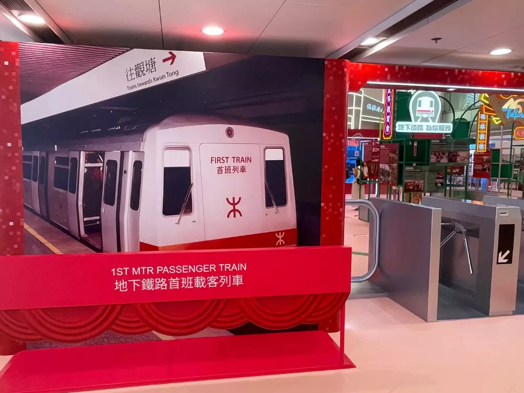 展覽把觀塘綫列車首次開通的經典照片打造成打卡位。巴士的報記者攝
