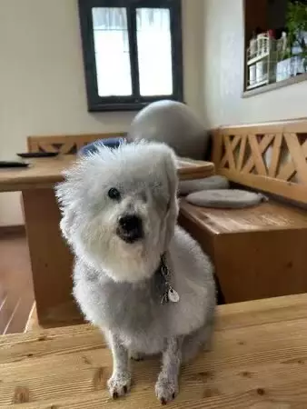 日前,日本一名飼主「@9Z8lquSv8B3FMpN」在家中開風扇為玩具貴賓犬「可可」(ココ)降溫時,意外發現牠的毛髮因為過於蓬鬆而隨著風向「立正站好」,從圓碌碌的小球直接變成尖尖的大飯糰。