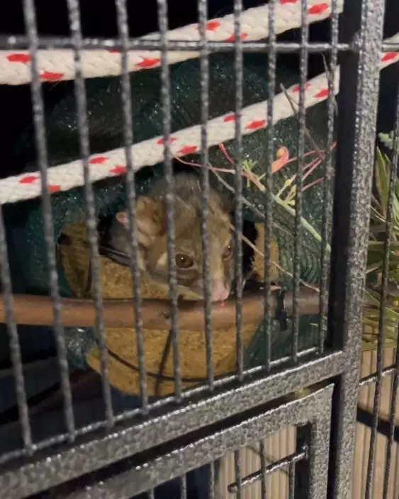 不久後,義工彼得(Peter)趕到屋主家中展開搜尋,最終於一個角落中看見一隻正在熟睡的「小毛球」,背影看上去像極了一把鬃刷,經確認為一隻圓碌碌的「毛尾負鼠」。彼得隨即小心翼翼用毛巾將負鼠救起,放進攜帶箱進行檢查,發現並未受傷後,將牠野放回自然。