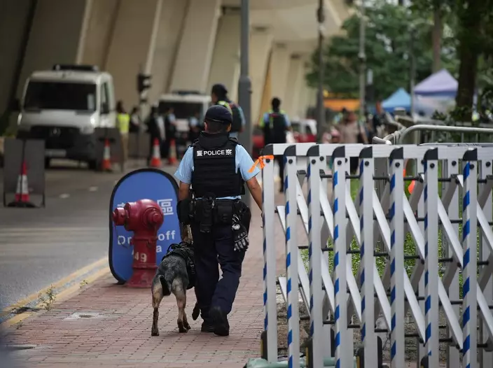 警方在庭外佈防。巴士的報記者攝