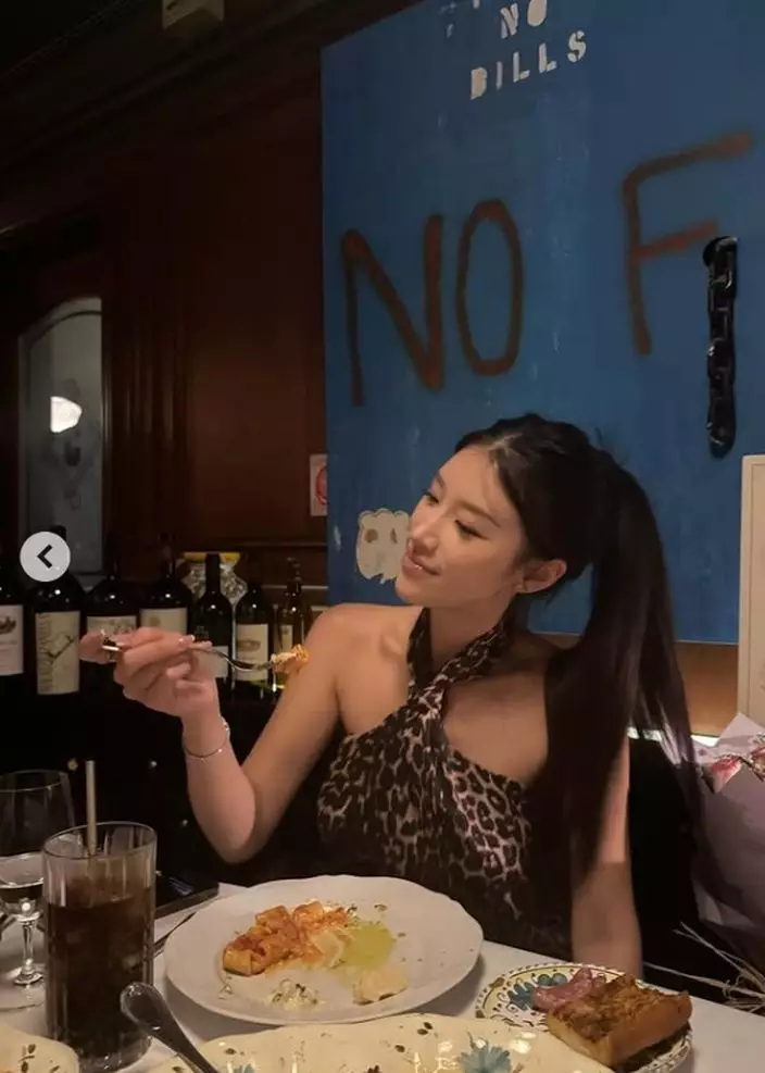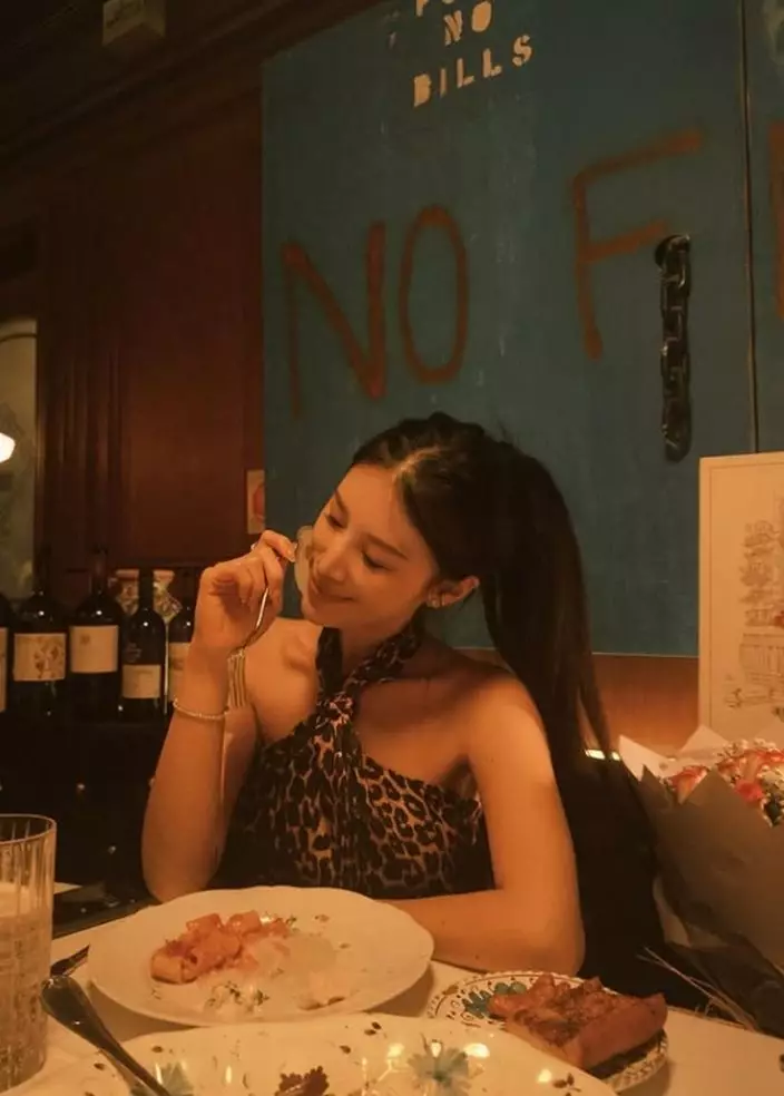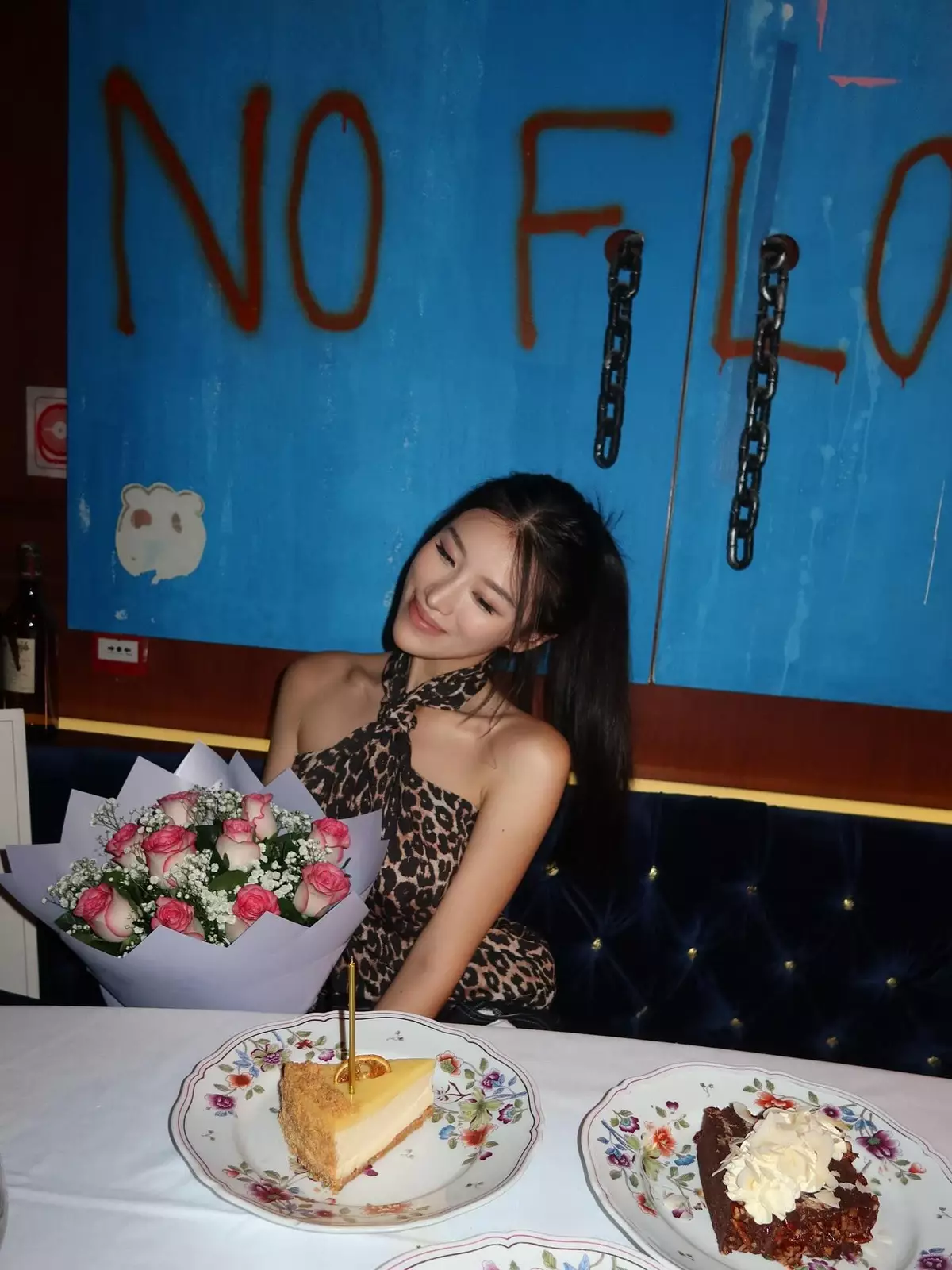 相中可見,郭珮文收起最強「胸器」,以掛頸豹紋上衣上鏡,大晒出白滑雙肩,加上生日大晒,她放棄身材管理,盡情享受美食和蛋糕,而且還收到友人送的玫瑰花,相信這個生日她過得相當滿足!