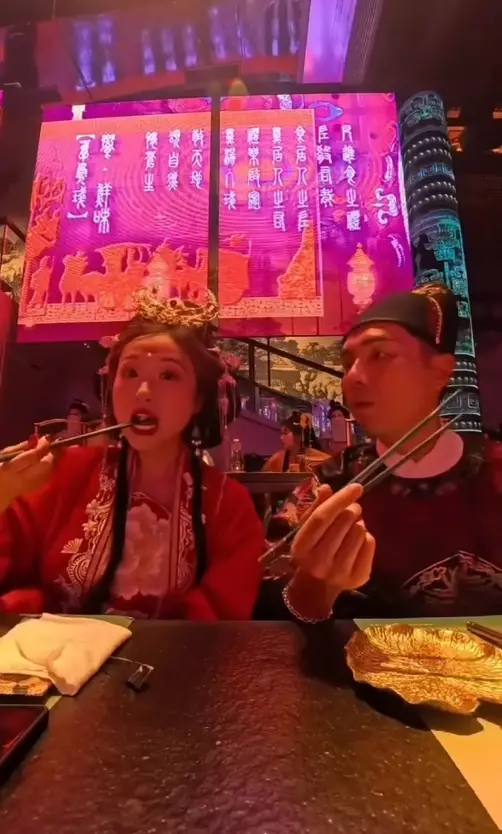 黃美棋在IG分享影片,並留言:「嘩!真係超大癲,一早俾佢叫醒咗,叫我半個鐘後出門!咩都唔駛帶,拎電話就得啦~原來佢知我好想去食宮廷宴...所以秘密地買哂機票帶我直闖成都!其實深圳都開咗間但佢話一係唔食,食就去食天花板級嘅!咁我連個腦都唔帶喇,Birthday trip係咁架啦,出發。」影片中可見,兩公婆去到當地一家集美食、文化、表演於一體的沉浸式漢文化主題餐秀體驗空間「蜀宴賦」,齊齊換上古裝,邊睇演出邊品嚐宮廷宴,之後再去Live House小酎一杯,鍾健威還上台大展歌喺,最後去了按摩作為這一趟生日之後的句號。