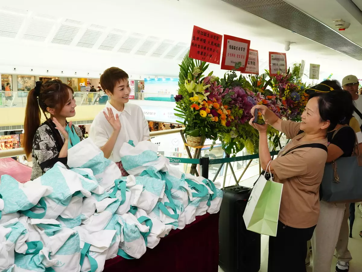 視后江美儀和人氣女神羅毓儀(Yuki)先後參與劇集《下流上車族》及話題戀綜《女神配對計劃》,日前這對「母女」繼續孖住出擊,齊齊出席馬鞍山新港城中心Q Foods Mall(俏貓貓優質生活百貨)新店開幕活動,與該店公司董事陳敏一同擔任剪綵嘉賓。活動後,她們即場向市民親自派發過百份大大袋的福袋禮物,吸引大批街坊打卡捧場,場面熱鬧。