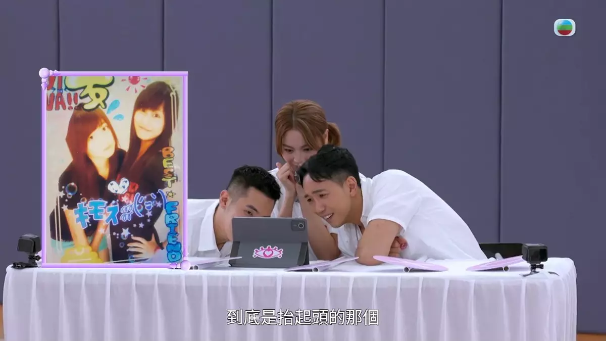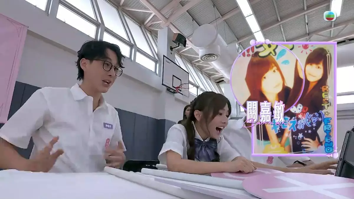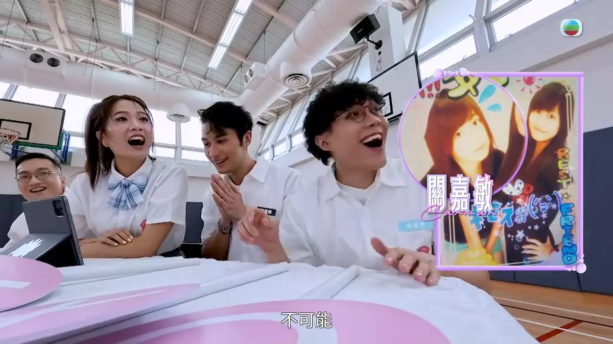 昨晚有兩大笑位,分別是關嘉敏(Carman)的「古惑貼紙相」,以及羅毓儀(Yuki)的「小矮人」角色及六年冇換校服裙。在個人專屬題中,Carman提供了一張中學時期與女同學影的貼紙相,細John及Matthew需要估中右邊或是左邊的人是Carman。照片一出,Matthew與細John即陷入迷思,Matthew投晒降:「我睇咗好耐,因為我覺得哩兩個都唔似Carman。」
