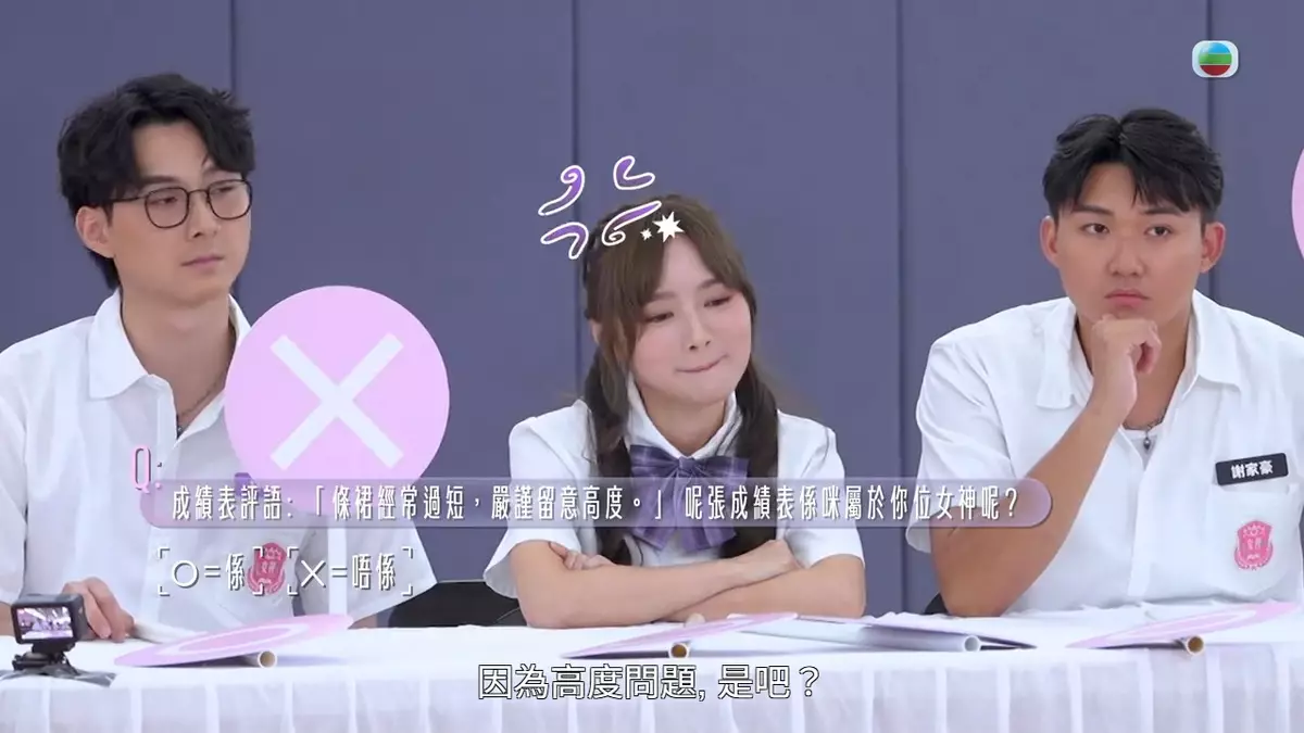 至於Yuki絕對是昨晚的搞笑擔當,更一人引爆了兩大笑點。首先,由於Carman因為長得太高,讀書時成績表經常出現「條裙經常過短,嚴謹留意高度」評語,題目一出,主持人阿Bob即將矛頭指向Yuki,被取笑細粒的Yuki即拋出苦主緊張表情包謂:「知道架喇,唔需要再提呢樣嘢。」而當Carman表示「每年都會畀人捉裙短」時,阿Bob再度瞄準Yuki攻擊,而Yuki放飛自我的回答:「我六年都冇換過條裙。」令全場陷入爆笑之餘,網民亦大讚啜核。