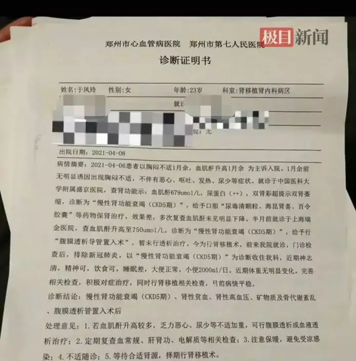 綜合內媒報導,山東濟寧一名27歲女子於悅4年前確診「尿毒症晚期」,需依靠透析治療維持生命。若長期不進行透析,將導致器官衰竭及一系列併發症,隨時可能危及生命。