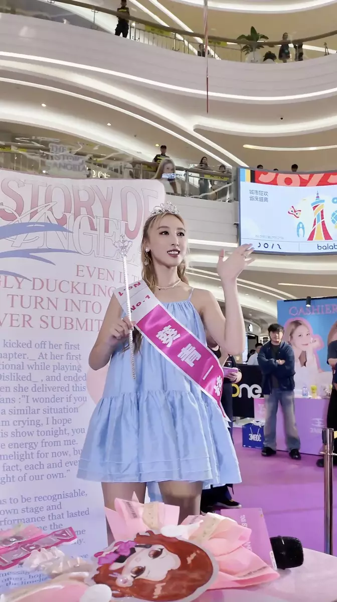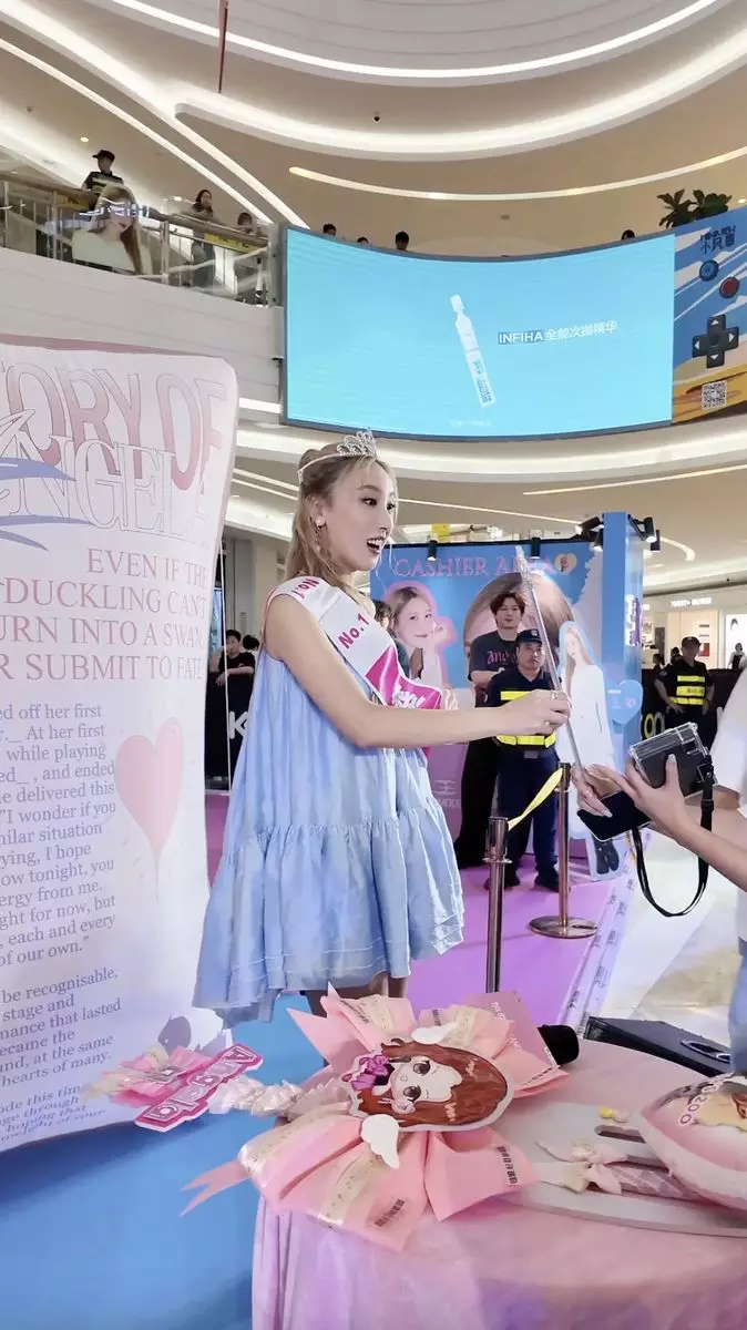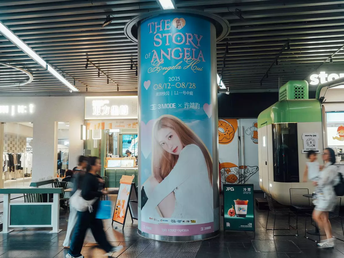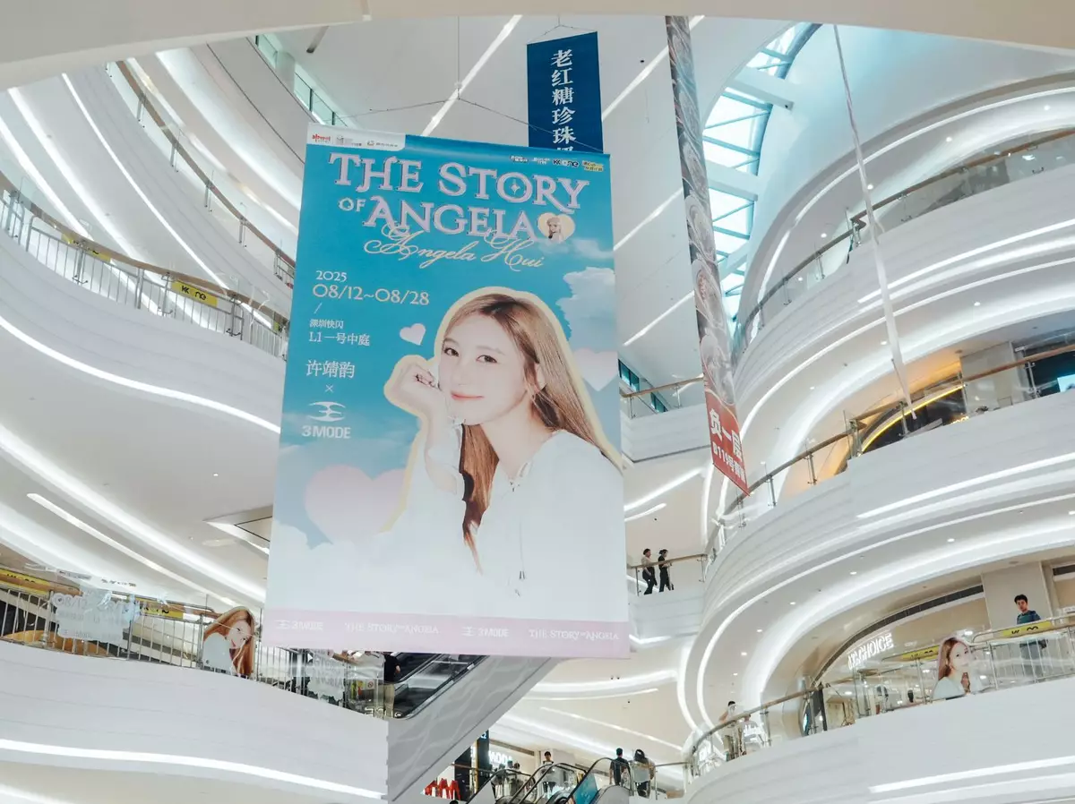 為宣傳這次跟Angela聯乘的周邊,品牌落重本將成個商場「改造」成「Angela主題樂園」!由門口到商場內,眼見都是Angela的靚樣,大型banner、掛畫、燈箱等,「哪裡都是許靖韻」,方便fans入商場瘋狂打卡。