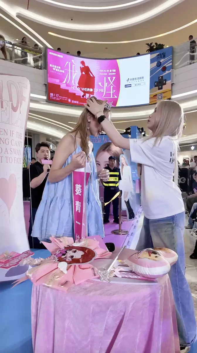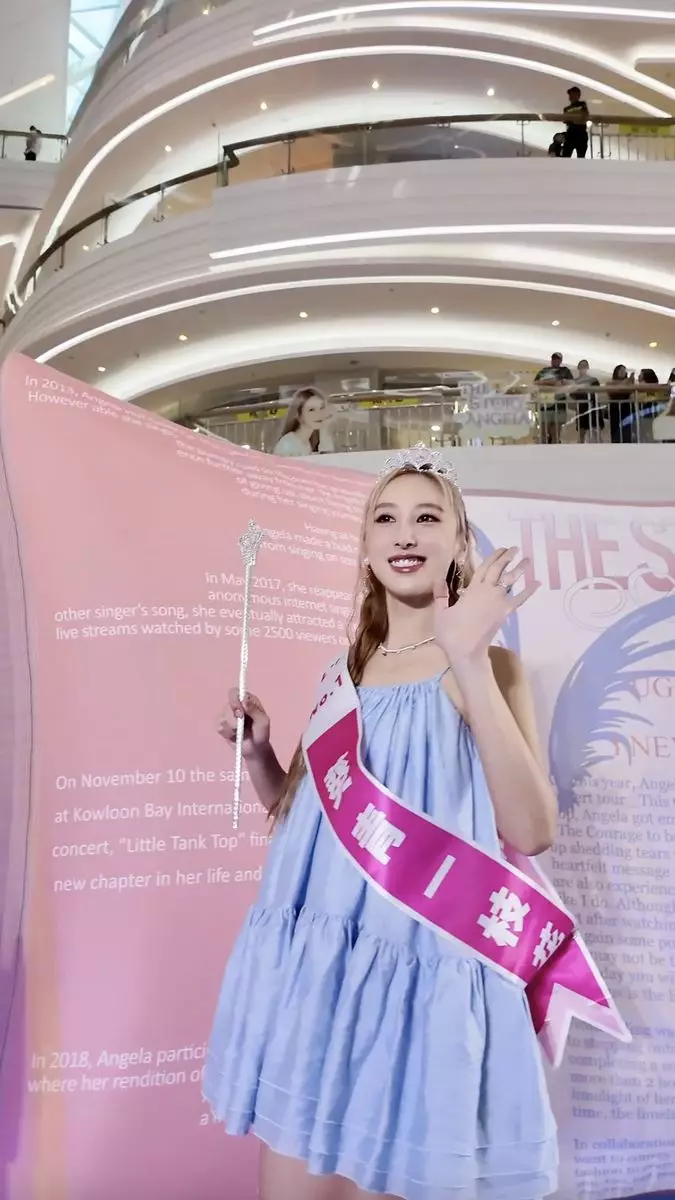 Angela一出場,即時引爆全場氣氛!除了大玩遊戲送禮物,大會又特設「人生四格」即影即有區,等粉絲可以同偶像瘋狂selfie,留念一流!活動中途發生搞笑一幕!有fans突然向Angela送上驚喜,拿出一個「后冠」及權杖,即場為Angela進行「加冕儀式」,更搞笑的是彩帶上面印有「葵青一枝花」字樣!Angela一望見即笑到見牙唔見眼,更說:「多謝大家封我做港姐,唔係,係『葵青一枝花』先真!」隨即席戴上后冠揮動權杖,又於台上繞場一周,瞬間女王上身,全場笑到碌地。