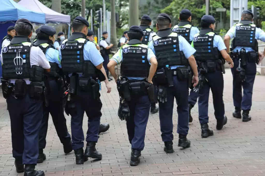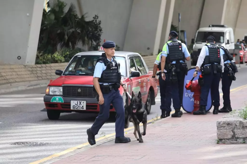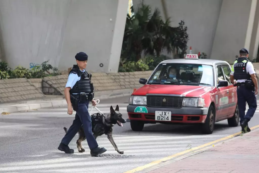 警方法院外查車。巴士的報記者攝