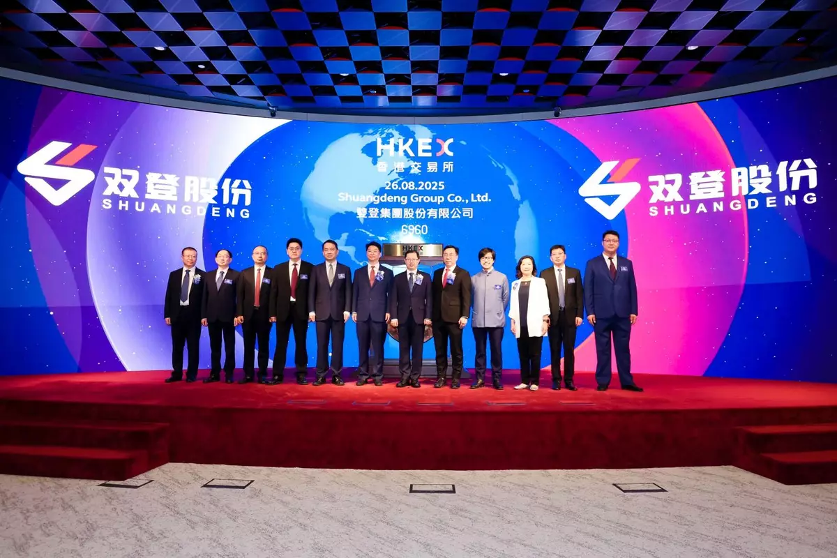 「一帶一路」專員何力治、投資署署理署長劉智元、助理署長李淑菁亦有參與上市儀式。投資署自二○二四年起為雙登股份來港提供戰略支持,雙登股份董事會主席、執行董事及行政總裁楊銳博士亦是今年五月李家超率領的中東考察團其中一員,在此背景及投資署的支持服務下,集團將進一步落實在港的發展計劃。
