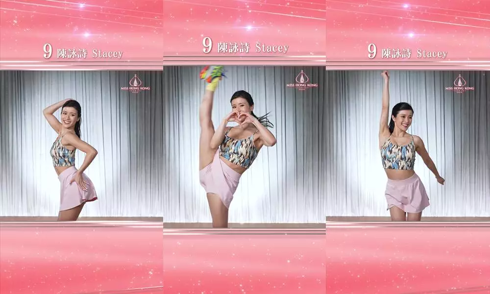而14位佳麗在決賽中將上演連場Fashion Show,展現醉人美態;根據昨晚播出的最新宣傳片,14位佳麗狀態大勇,當中熱門之一的7號施宇琪,及12號庄靜璟穿上華麗晚裝後,驕人身段更是表露無遺。另大會官方社交網昨日(25日)上載14位佳麗的「即興跳舞挑戰」短片,當中熱門之一的9號陳詠詩,在片段中大晒超強擘腿功之餘,老鼠仔的壯健程度亦相當驚人,不愧為前體操界精英運動員。另11號梁倩萱及13號袁文靜中,「即興跳舞挑戰」分別憑貓咪手及「舞動的馬尾」成功搶鏡,充滿青春活力。