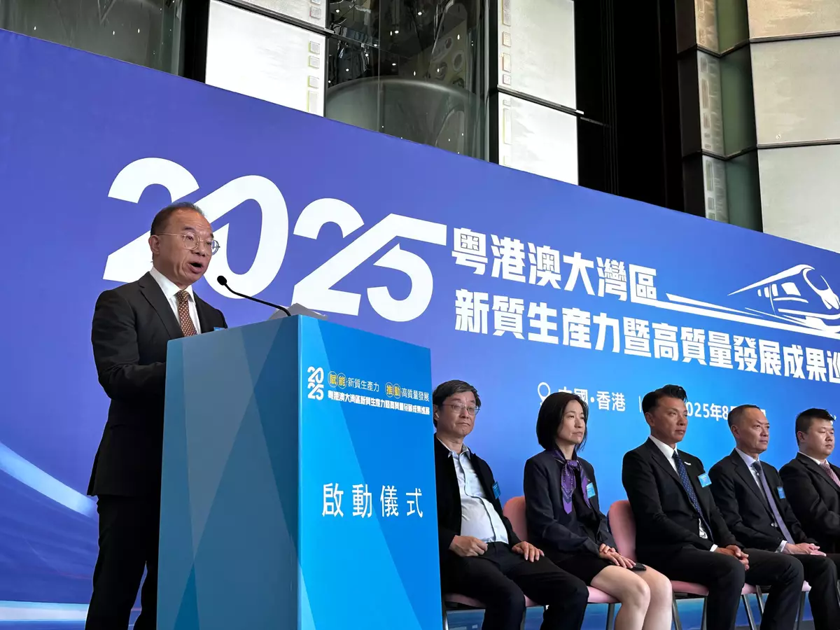 政制及內地事務局局長出席「2025粵港澳大灣區新質生產力暨高質量發展成果巡展」致辭。政府新聞處圖片