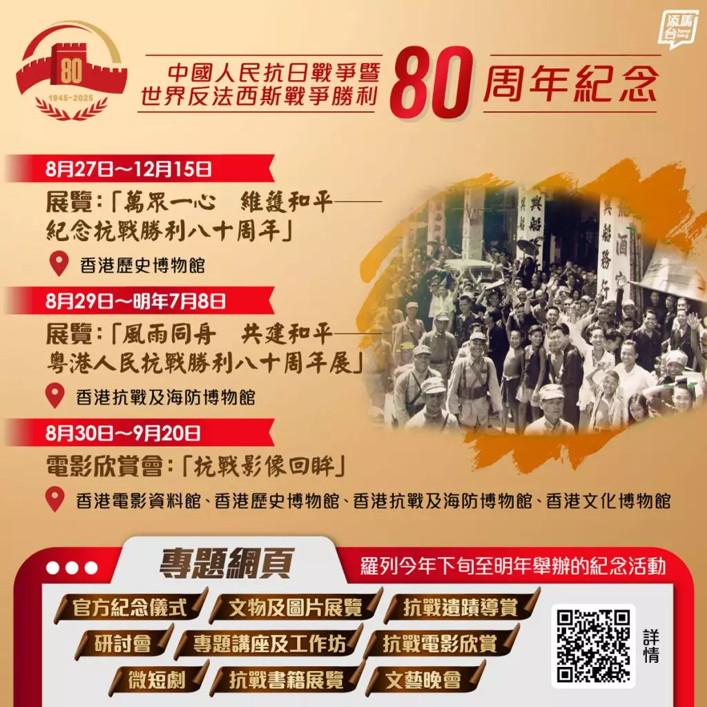 香港歷史博物館舉辦紀念抗戰勝利八十周年的主題展覽,展出超過180件抗戰文物,當中超過一半是中國國家博物館藏物,有八件屬於一級文物。
