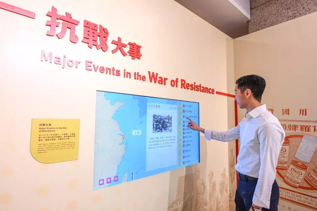 「香港賽馬會呈獻系列:萬眾一心 維護和平─紀念抗戰勝利八十周年展覽」透過互動裝置,讓參觀者更深入了解國家抗戰歷史和近代中國史。