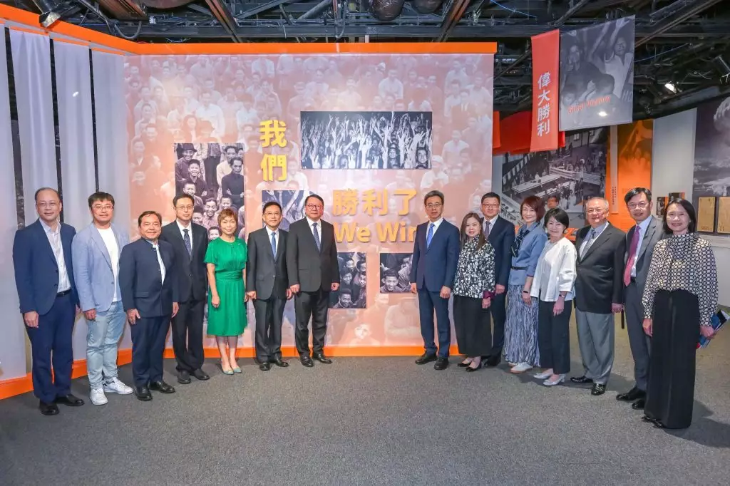 香港特別行政區政府政務司司長陳國基、香港賽馬會董事龔楊恩慈與一眾嘉賓參觀「香港賽馬會呈獻系列:萬眾一心 維護和平─紀念抗戰勝利八十周年展覽」。