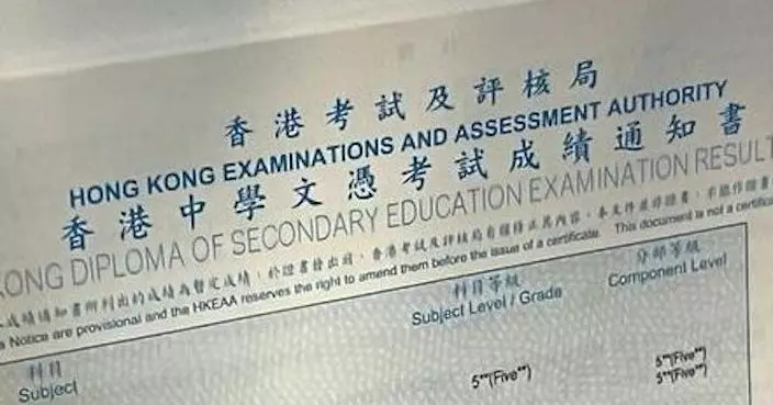 考評局提到,根據文憑試成績覆核前的統計數據,今年文憑試日校考生在中國語文、英國語文及數學必修部分三科取得5**級的人數,均較去年增加,佔日校考生的比例保持平穩,沒有受增加的自修生的成績所影響,強調今年考生的整體成績平穩,以個別科目取得5**級的人數來評價整體考生表現將有欠全面。