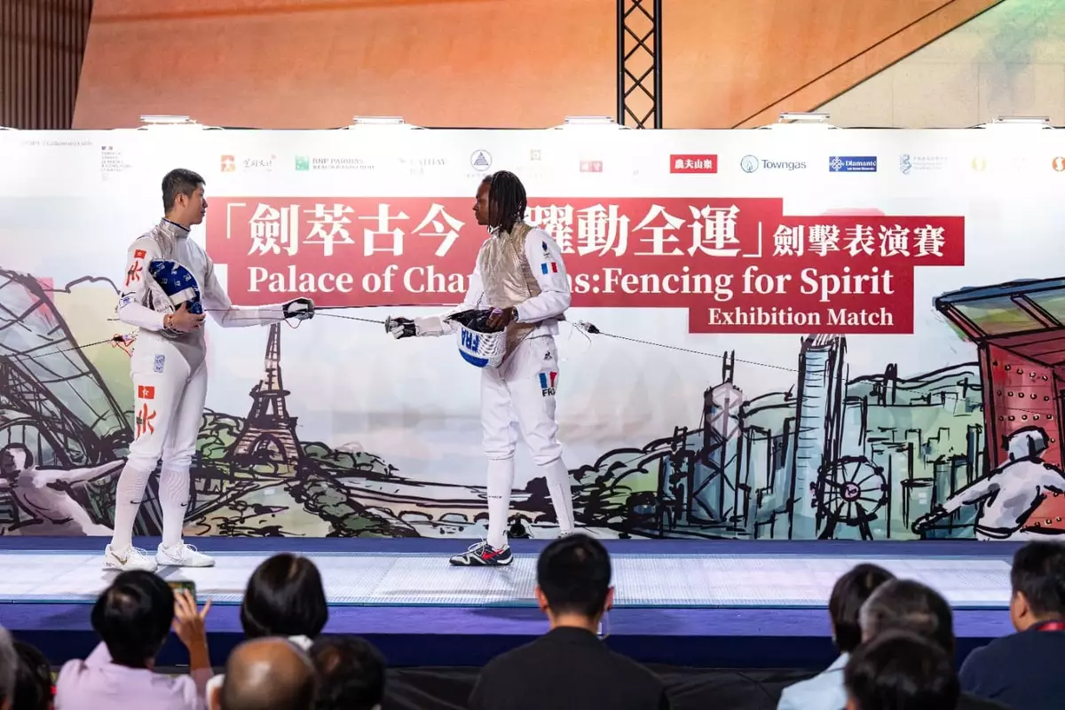 為推廣2025年全運會,由慈善機構青途主辦的「劍萃古今·躍動全運」劍擊表演賽晚上在香港故宮文化博物館舉行。奧運雙金得主、港隊花劍代表張家朗,與法國花劍名將、兩屆世錦賽冠軍拿霍特進行表演賽,上演巴黎奧運男子花劍8強翻版戰,最終張家朗以15:12勝出。
