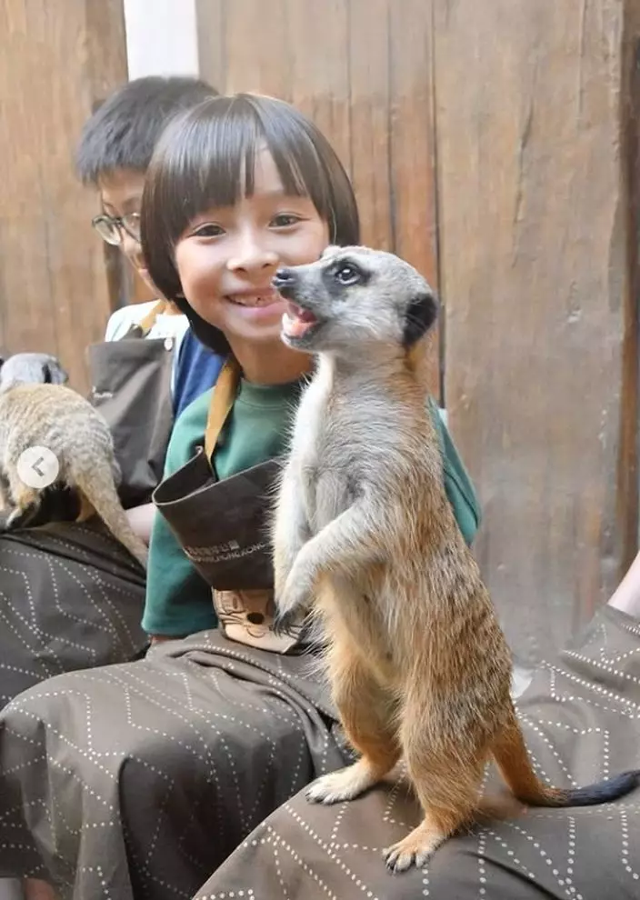 賴慰玲在IG晒出帶兩個囝囝去海洋公園玩的照片,可見三母子除了去探大熊貓、睇魚,以及親親小狐獴,但由於細仔Kavis只有7個月大,所以只有賴慰玲和大仔Marat落場,和小狐獴來個親密接觸,兩母子都笑得很開心,似乎毫不害怕!