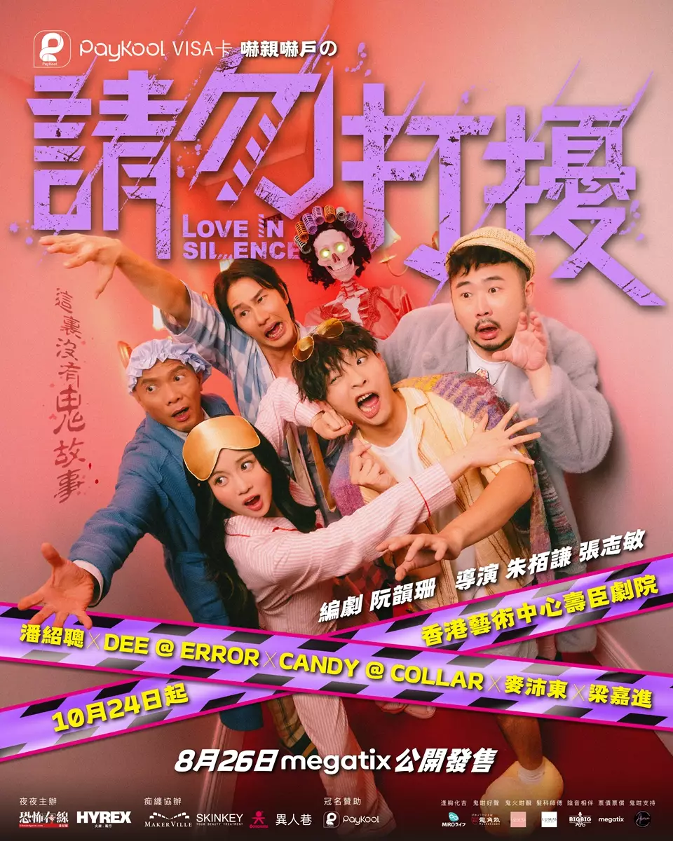 「鬼王」潘紹聰的招牌節目「恐佈在線」,繼2023年推出鬼故事舞台劇《死鬼老婆》,以及去年的《一樓一會》後,深受劇迷歡迎,反應熱烈,場場爆滿。今年「鬼王」潘紹聰(Edmond)再接再厲推出舞台劇《請勿打擾》,找來人氣男團ERROR成員Dee(何啟華),夥拍人氣女團COLLAR成員Candy(王家晴)擔任男、女主角,聯同資深舞台劇演員麥沛東和梁嘉進(Eric),相信再掀起撲飛熱潮。