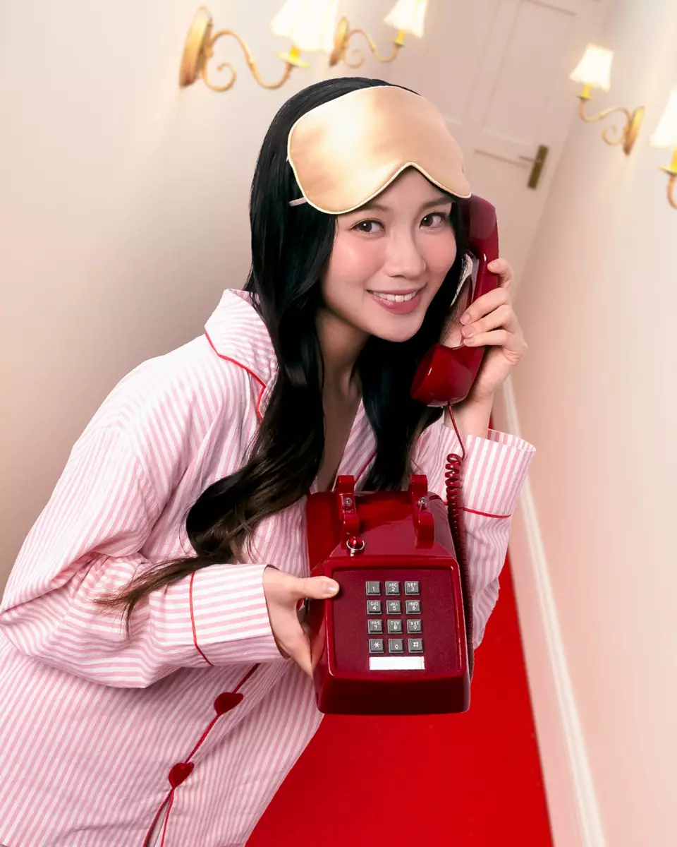 為了配合舞台劇《請勿打擾》的酒店主題,早前一眾演員齊集拍攝宣傳照,各演員以入住酒店的睡衣look來拍攝,最吸晴的當然是劇中惟一女角Candy的造型。穿上粉紅色條紋睡衣的Candy,難得以睡衣look示人,對今次的造型,Candy興奮說︰「今日造型係穿睡衣同埋有眼罩,嗰角色好似剛剛瞓醒,有史以來未試過拍攝咁舒適,好家居感覺,同埋我好鐘意粉紅色,顏色好靚。」至於阿Dee的造型,看起來頭髮有點亂,原來是刻意營造的,阿Dee謂︰「我呢一身造型係頹廢睡衣look,我喺劇中演一個編劇,入住酒店攞靈感,住咗間猛鬼大酒店,係一個有血有肉嘅靈異故事。」