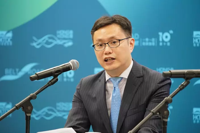 商務及經濟發展局局長丘應樺分享香港在共建「一帶一路」擔當的角色及最新發展機遇,以及政府在「一帶一路」倡議的工作成果。圖片來源:香港貿發局