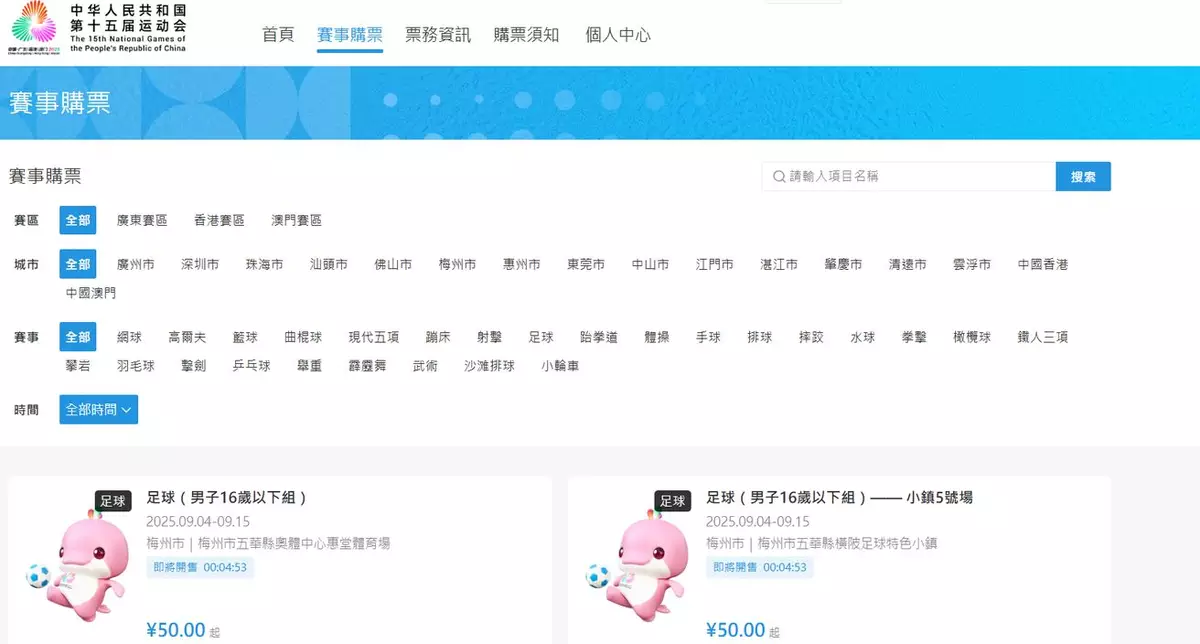 第十五屆全國運動會和全國第十二屆殘疾人運動會暨第九屆特殊奧林匹克運動會香港賽區首批賽事門票,星期四(8月27日)開始發售。