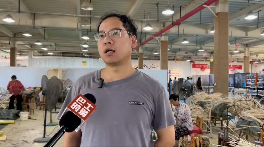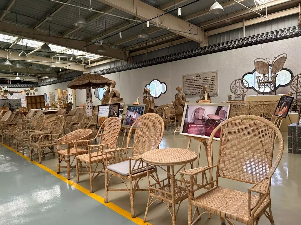 另一位居民蔣先生原本在外工作,結婚後返回小鎮,負責在直播間掛商品鏈接。蔣先生表示,現在直播時間較為固定,每日早中晚各播一場,線上銷售額佔整體銷售額的60%以上,最暢銷的一場直播營業額可達10萬。他透露,藤椅價格由三四百到兩三千不等,「總體而言,一年也有八千萬營業額。」目前,有部分藤椅已銷往海外,包括日本、新加坡、丹麥等。