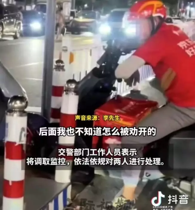 現場畫面可見,一名身穿制服的外賣員,與一名電單車男子在馬路中央的隔離帶通道相遇後,因雙方均不願意退讓而在原地鬥氣對峙至晚上8時。惠州交警事後證實,涉事雙方均屬電單車騎士,並未發生交通事故,因此不會進行扣分處置。當局將調取相關路段監控,綜合是否有逆行、誰先到達路口等情況,對雙方作出批評教育及相應處分。