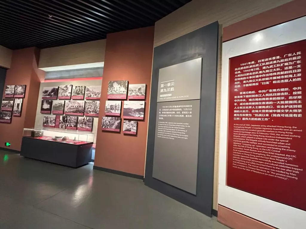 其中「東江縱隊與香港」展區尤為引人注目,詳細展示了東縱在香港地區的抗日活動,包括「秘密大營救」等重大事件,生動再現了東縱戰士在港九地區保護文化名人、牽制日軍的英勇事蹟。