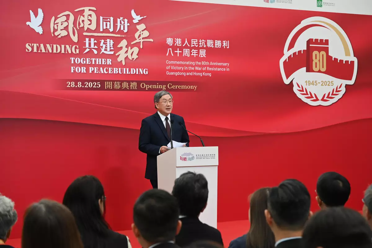 卓永興出席「風雨同舟 共建和平——粵港人民抗戰勝利八十周年展」開幕禮致辭時說,他代表特區政府向所有為抗戰勝利作出貢獻的先烈及老戰士致以最崇高的敬意。他引用國家主席習近平所說,歷史是最好的教科書,也是最好的清醒劑。