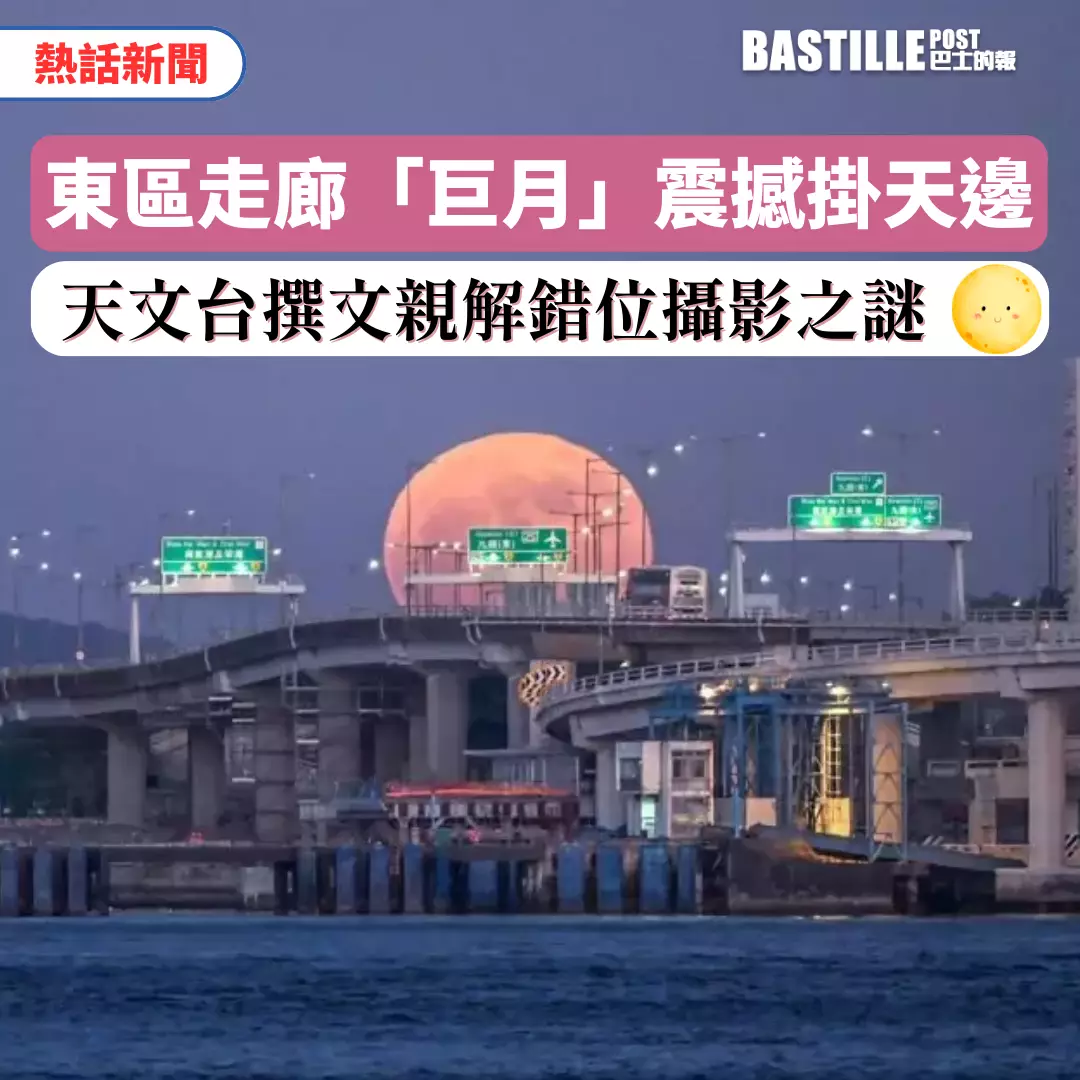 近日,網上瘋傳一張攝於東區走廊的「巨型月亮」震撼天邊相片,由於拍攝者錯位拍攝,相片中的巨月讓人仿若置身科幻大片現場,過目不忘。