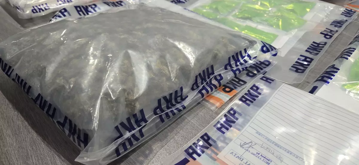 一名23歲男旅客20日從泰國曼谷飛抵本港。海關人員清關時,在其寄艙行李內發現該批藏於真空包裝袋的懷疑大麻花,該名男子隨即被捕。